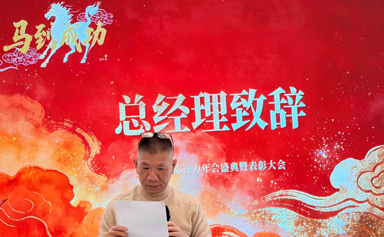庆典伊始,升力科技董事长辜俊先生率先登台致辞。他首先向全体员工及家属致以诚挚的感谢,向异地奋斗的三门峡公司同仁送上新春祝福。谈及未来,董事长强调,2026年是公司发展的关键之年,明确了公司“严控风险、稳健发展、内部改革、高效创新”的核心方针。