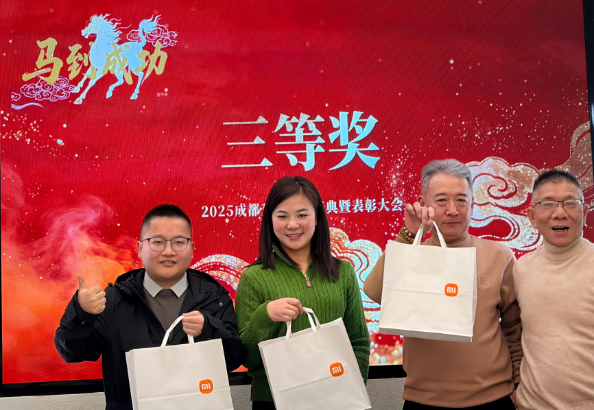 跨越山海,情谊相连。庆典现场特别设置三门峡公司视频送祝福环节,屏幕上出现的三门峡团队身影,让现场暖意融融。视频中,三门峡公司同仁回顾了2025年的工作成果,表达了对成都公司的感恩与认同,并许下2026年“同心同德、并肩作战”的誓言。这份跨越地域的祝福,生动诠释了 “升力一家人” 的深厚情谊,也彰显了公司上下协同发展的强大凝聚力。